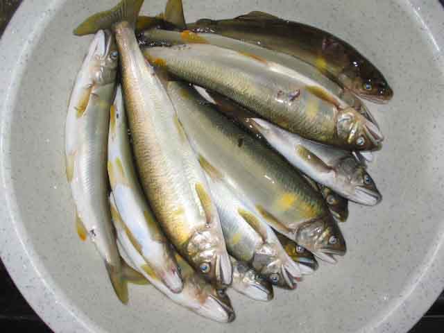 - 少し潤うくらいの雨が降って,今日は晴天。30℃を超える予想。気合いをいれて3時出発。付知の新田瀬橋にはすでに釣り人の車。ここはパスして白川に向かう。かねふくのおとりを購入して加子母に向かう。まだだれもおらず,目的の上流部に入る。状況は先週の解禁と変わらない。やはりちょっとした深場を狙い,ぽつりぽつり掛かる。9時を過ぎて,さあこれからか,という時にぱったり掛からなくなってしまう。ここで白川に向かうことにする。こちらはすごい人出。越原地区の専用区の最下流が空いていたので降りていこうとすると,釣れてなさそうなので,加子母に向かうという人がいた。10匹くらい釣ったと言ったら,そのまま粘ればいいのにと言われてしまった。結果的にはそのとおり。昼までに1匹追加しただけ。もう1時間だけ加子母に竿をだしたのが正解。入れ掛かりもあって,18匹まで伸ばした。