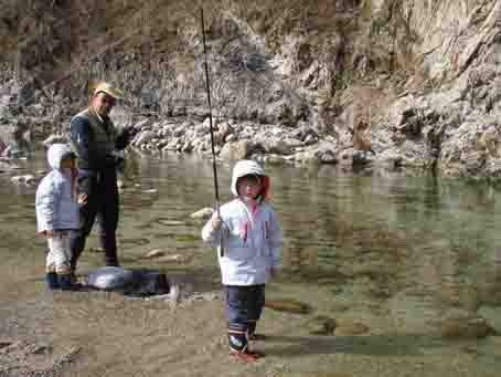 参加費2000円で子供は無料。五平餅と豚汁が振る舞われるということで,和知野川の川開きアマゴ釣り大会に参加。23cm以上も結構混じって,まあまあでした。