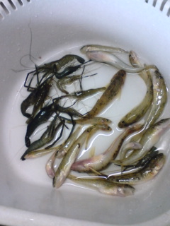 - 帰りに長良川中央により、翌日の恵那漁協の中小河川の解禁のため、おとりを購入する。翌日は朝4時に起床。めずらしく長男も行くとのことで、3人で中津川へ。途中で明るくなり、若干遅いスタートを悔いる。目指すポイントには、すでに竿1本分のスペースも無い。仕方なく上流に向かうと、まあまあのポイントが空いており、それより上流は1人のみ。ここに入る。気温水温ともに低く、子供らはぶるぶる震えている。1年でもっとも楽しみな日。子供には我慢してもらう。さすがに、高水位と低水温のため、追いは良く無い。ぽつりぽつりと掛かる程度。しかし、20m程の絶好のポイントを一人占めでき、往復するごとに数を稼ぐ。大きな石が入っていいるためか、大型も混じる。8時頃には25匹オーバー。10時頃には日ざしも出てきて、水位も下がり、重りを噛ませて、これまでに攻めきれていないポイントを探ると、10連発。漁協の監視員がくる頃には40を超えていた。監視員の聞き取りでは最高は21匹。その倍を稼いでいた。「今日一番だね」、アユ釣り最高の優越感にひたる。アユは追い星がくっきりとして油びれは綺麗なオレンジ色、背びれは長いすばらしい容姿。場所変えしてさらに10匹ほどを追加して、13時30分に終了。自己記録を更新し60匹!! 最高の一日になりました。