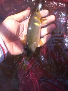 - 5時半に朝倉さんをピックアップして長良川へ。大和地区に入ります。前日、結構掛けていたそうです。大きな淵があり、昼には瀬肩にはみ出してきそうですが、朝一番では見えません。ちょっと上流でアユが跳ねています。ここで1時間ほど竿を出しますが、ノーヒット。下流の岩盤壁のポイントに入ります。ここでぽつぽつと掛かるのですが、いきなり21cm、これをおとりにして強烈なあたりで親子どんぶり。おもりを噛ませて引きづりすると直ぐヒットするも、空中輸送中つけ糸ぷつり。。。鼻管まわりの仕掛けを出したところで落としてさよなら、、、一進一退が続きます。朝倉さんはうまく泳がせて次第に大きなアユを掛けていきます。流れ込みのポイントが空いたので、ここで竿を出すと、強烈な当たりで、激流を上流に登って行くアユが掛かりました。22cmオーバー。これが続きました。14時過ぎには朝一のポイントにアユがたくさんはみ出て、ここで4連発。途中、親子どんぶりの仕掛けを引っ掛けて、これまた22cmのおとりと掛かりアユをゲットしたこともあり、おとり抜きで13匹となりました。