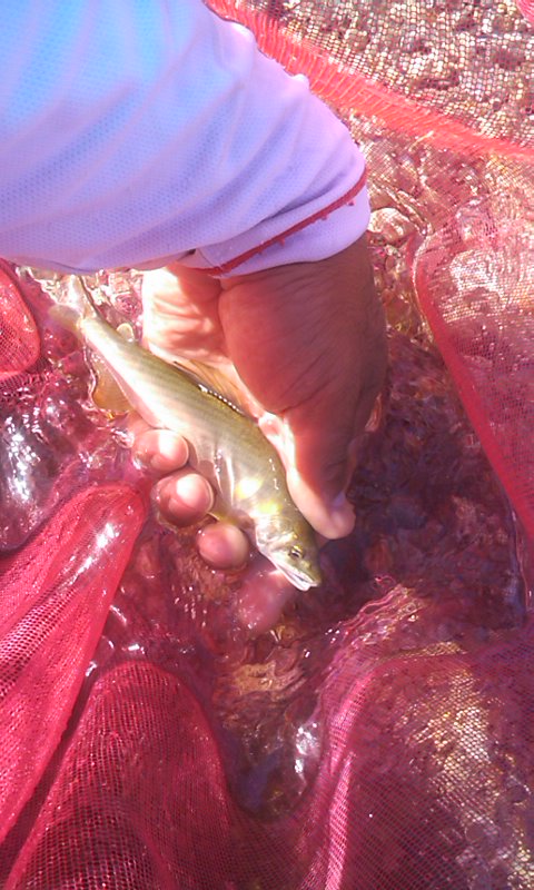 - 土曜日は仕事のため、振り替え休日をとって平日釣行です。今日は朝倉さんといっしょです。6時過ぎに中津川のおとり屋さんでおとりを購入。市役所下のポイントを30分ほど探りますが、ノーヒット。川上川に移動です。河川公園の下流のポイントを朝倉さん、上流を自分が釣ります。ここでは5匹ずつ掛けました。さすがに魚影は薄くなっています。車でちょっと上流のポイントに移動です。さすがに川幅が狭くなるので、朝倉さんは苦戦しています。自分は前回釣れたポイントが分かっているので、どんどん掛けながら移動していきます。ここでは21匹を追加。もう一度最初のポイントに戻って、さらに5匹を追加。今日は31匹でした。