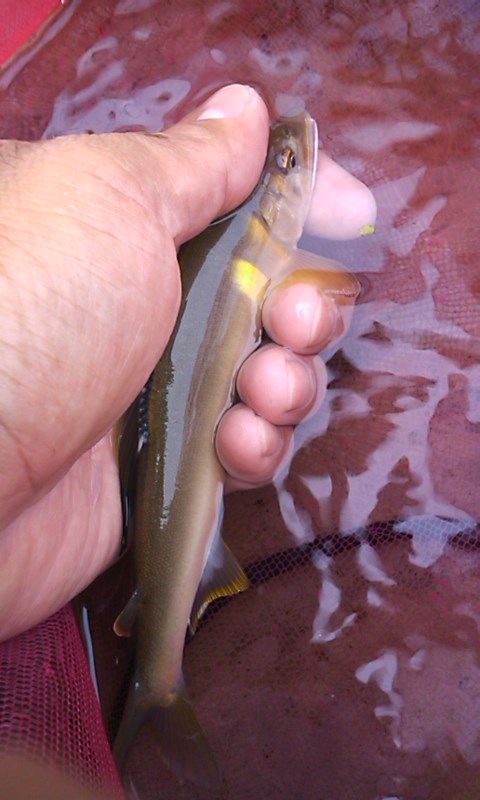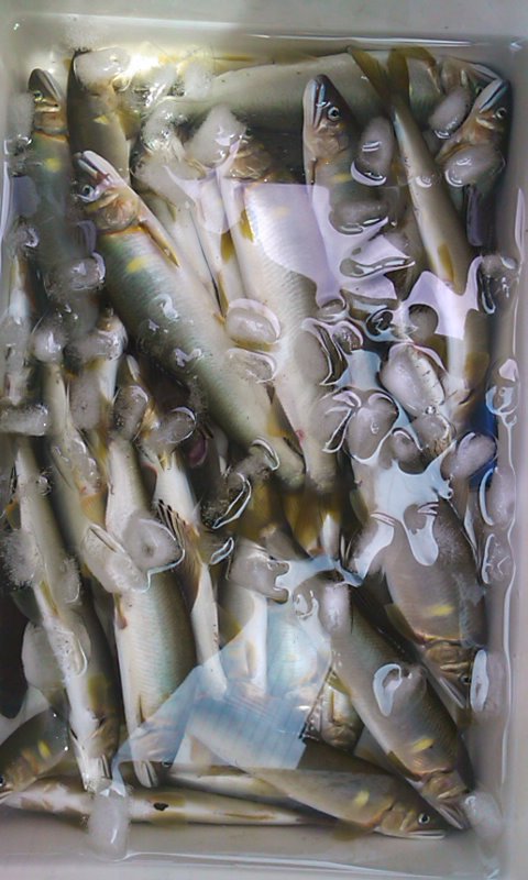 - 恵那漁協管内の小河川の解禁2週目です。先週の2日間に続き、3つ目の河川へ。ずいぶん早く出たつもりでしたが、目指すポイントにはすでに竿を出している人が。。。次のポイントに入ります。いつものおとり取りのポイントに入れますが、なかなか掛かりません。ようやくヒットしますが水中バレ。上の段に入れるとすぐ掛かりますが、これまた水中バレ。最後のポイントに入れると、これまたすぐ掛かりました。ようやくおとりが代わりました。これにおもりを付けて強い流れのポイントに入れると、、1発! これは石に巻かれて外れました。バレまくりです。ここぞというポイントで掛からず、次が来ません。河原の砂地をみると前日と思われる足跡が。。どうやら抜かれた後のようです。掛かりが悪いはずです。こうなると、おもりを付けてへちぎりぎりを狙います。ようやく目が覚めるようなアタリで18cm、続けて19cm。この川ではお盆くらいにならないと掛からないようなサイズです。
