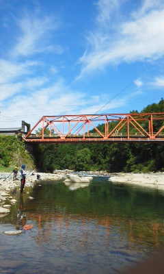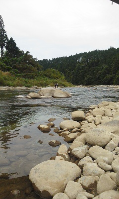 9月20日(土)曇り いよいよ付知のメガ鮎シーズンです。先週は3連休でしたが、釣りに行けたのは土曜日のみ、あと2日は出張でした。金曜日は飲み会で遅くなりましたが、5時に起床して一路付知へ。喫茶JBでオトリを購入して下流に向かいます。目指すポイントには1人のみ。橋から見ていた人の話では、毎週来ている人のようです。見ている間に1匹釣りました。急いで準備して対岸の下流に入ります。このポイントは、昨年、上手な人が入れ掛かりさせていたポイントですが、渇水で川の状態は良くありません。