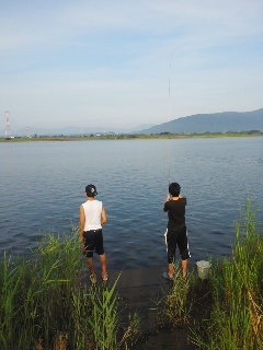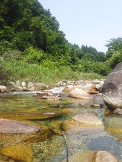 - 少し早いお盆休みです。朝倉さんと最近好調の付知に向かいます。下流からめぼしいポイントを見て行きますが、どこも川の状態は良くありません。1箇所だけ良かったポイントに入ります。初めてですが、淵と瀬が連続しているポイントです。淵尻には多くの群れ鮎が見えます。後期放流ものでそれほど大きな鮎ではなさそうと思っていましたが。。。時間1匹のペースですが、多くの鮎が見えているので退屈はしません。少し遠くのポイントに入ると、3m以上閃光が上流に向かいました。思わずのされそうになるところをこらえて、時間を掛けてすくったのは、23cmを超える大物です。群れ鮎が小さく見えたのは水が奇麗で水深が深いからのようです。