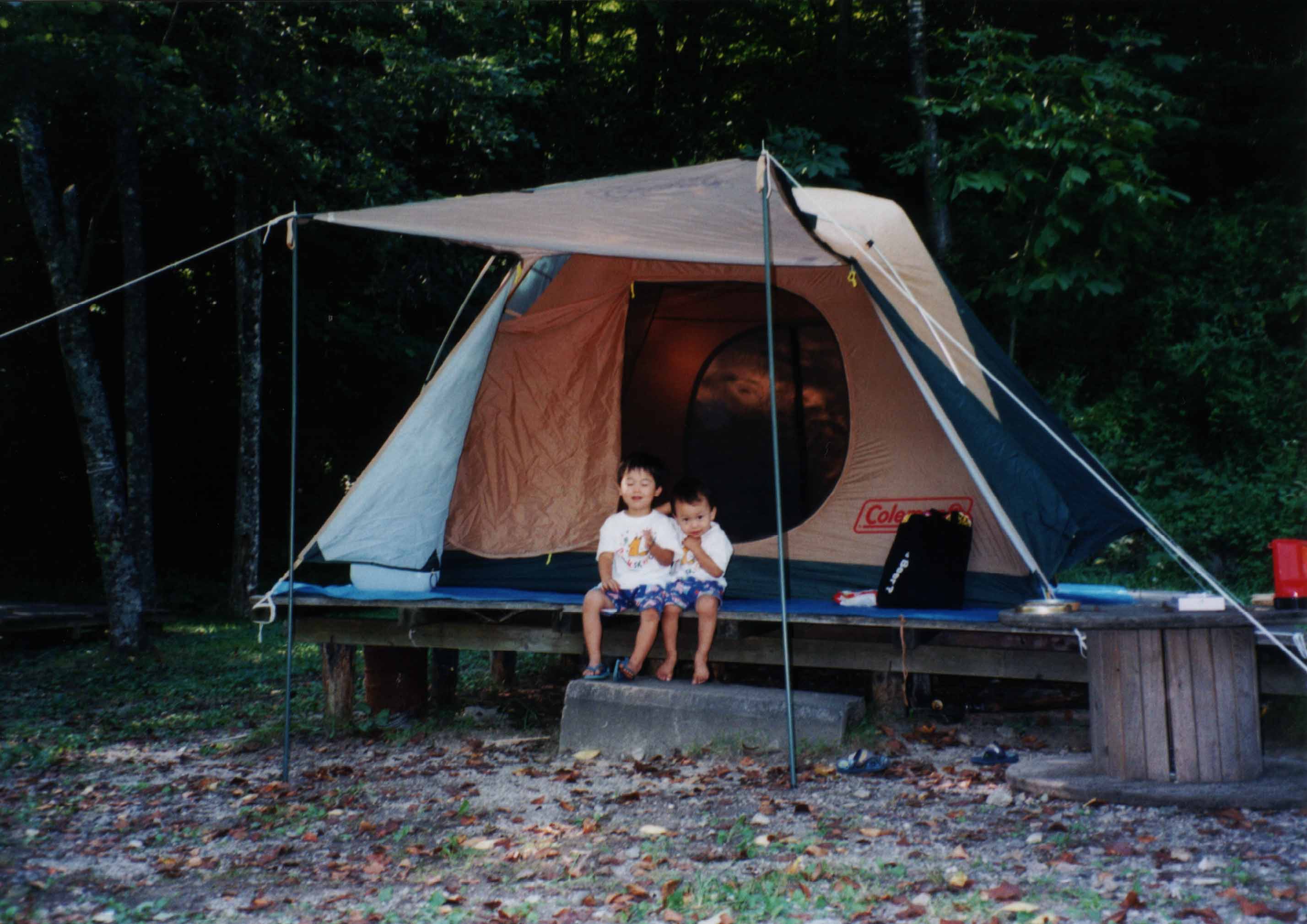| 去年,双六渓谷キャンプ場に行って,佳留萱山荘の露天風呂に入った時, 旅館の敷地内にキャンプ場があることを確認していました。しかし,どのキャ ンプ場ガイドにも載っていません。それもそのはず,山荘が独自にやっている キャンプ場なのでした。佳留萱山荘のHPに載っています(http: //www.karukaya.co.jp)。料金は大人ひとり2千円で計4千円で,露天風呂入り 放題。かなりお得です。今日は誰もいないから好きなところにテントを張って いいとのこと。5m四方の木製の高床があり,その上にテントを張るようにな っています。湿気がつかないし,石ころが痛いこともありません。今回も蛍光 灯を忘れてしまいましたが,小さなライトは持ってきたので安心です。露天風 呂,バーベキュウ,花火,露天風呂,そして就寝です。5時過ぎに起床して, 露天風呂の中で稜線からの日の出を見ました。9時に出発して,念願の新穂高 ロープウエーに1時間待ちで乗りました(過去3回,行列のあまりの長さに断 念しました)。子供も大喜びです。もう一泊は,温泉旅館です。 |