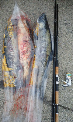 - 10月最後の土日は強風と降雪のため釣行できず。去年は10月最後の日曜日で竿をおさめました。今年も終わりでしょうか? 11月3日、久しぶりに風が止みました。まだまだ岸際には鮭の姿が見えますが掛かりません。金曜日は代休を取って休みましたが、強風で竿が出せず。ここのところ、気温も氷点下です。4日の土曜日、寒いのですが、風が止んでいるので、寒さは感じません。一昨日の魚影はどこへやら。。。生命反応がありません。明るくなって諦めかけたところ、コツンコツンと2度の前アタリの後に浮きが沈む典型的な鮭のアタリ!! 80cmの雄でした。 続けて同じ当たりで75cmの雄。最後に70cmの雌と、この時期に3本と恵まれました。