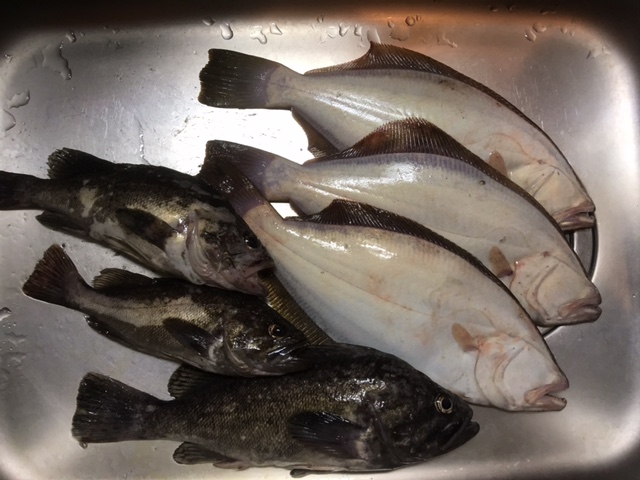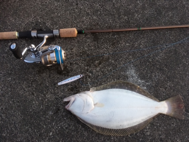 サイズが小さくなりましたがヒラメ2枚、大型のクロソイ1匹をゲット。まったく上がってこない大物にはPE1号を切られて逃げられました。