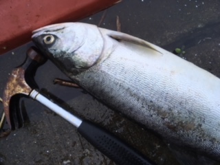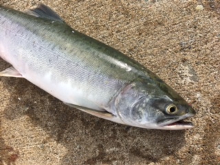メジャークラフトの柔らかい竿のため走り回られましたが、50cmの雄のカラフトマスを初ゲット!!