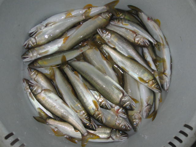 - 家族で中津川へ。9時半すぎに到着。昨日のおとりは弱っていたためか大きいためか、なかなか掛かりません。30分ほどロスして、過去必ず釣れたポイントでようやく天然に変わりました。先行者がめずらしく2人もいたからでしょうか。石回りにはついておらずザラ瀬で連続してかかる。午前中で13匹。午後には下流の瀬で大型を掛けて、3時に終了。出だしはどうなるかと思いましたが、ポイントを見つけてから楽しめました。半分くらいはもう卵を抱いていました。そろそろ終了でしょうか。