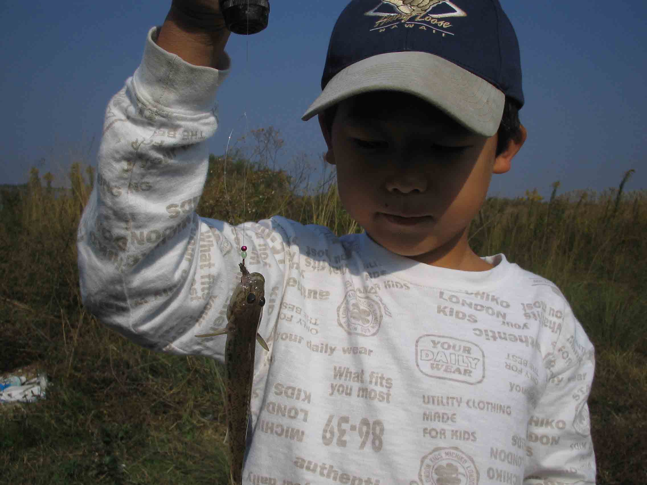 - ハゼ釣りが好調のようなので、家族で立田橋近くへ。10時過ぎに現場到着すると、ちょうど干潮を迎えた頃。ちょい投げでぽつりぽつりと釣れるが、忙しい程ではない。下の子がザリガニがいるよ〜と言うのを、そんなことはないよ、と聞き流していたが。。。昼を過ぎて、だんだん潮が満ちてくると、ハゼも浅瀬にあがってきて、見釣りでハゼが釣れるようになる。よくよく見てみると、ハゼとドンコに混ざって、石の間からハサミを出してくるのがいる。あれ、手長エビ?? 下の子がザリガニと見間違えたようだ。長いハサミを出してきて、えさのイソメを挟んでくる。はさんだところを釣り上げようとするが、いいところでハサミを離してしまう。何回かやっているうちに、ようやく1尾を釣り上げることができた。ハサミを入れると10cmをこえるサイズ。空揚げにすると美味しそう。しかし、だんだん潮が満ちてきて、小さなブロック護岸にいられなくなる。下の子がどうしても釣りたくて靴が濡れだしても釣ろうとしている。ここは諦めて、コンクリート護岸にあがってみると、護岸の下からエビが覗いている。これを狙って、大小10尾ほど釣り上げた。家にかえり、大物は昆虫用の小さな水槽に入れ、小物は金魚を買っている水槽に入れた。1〜2日すると、金魚に異変が。。。デメキンのヒレが無くなっている!? 2〜3cmほどの手長エビにやられたようだ。結局、水槽を入れ替えたが、数日後に小エビは全滅。大きなエビは長生きしている(12月17日現在)。釣り具屋でワカサギ釣り用の赤虫を購入して、金魚と熱帯魚にあげるついでに、手長エビにも与えている。