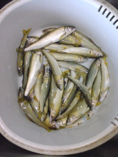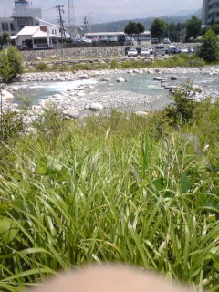 - 7月から単身赴任で東京の役所に出向。なれない仕事と生活、台風による増水などで、1ヶ月以上アユ釣りから遠ざかっていた。夏休みもほとんど取れないようなので、比較的暇なうちに釣行することにした。水位も低下し、天気も良い。そろそろ釣り頃とN川に向かう。おとり屋がなかなか見つからず、釣りはじめたのは7時半すぎ。平水より若干増水している程度。新調の支流用7.5mでどんどんポイントにおとりを入れていく。魚影は薄い感じで、走るアユは少ない。それでも、ここぞというポイントでは、おとりを入れるとすかさず掛かる。11時までに、ほとんどのポイントを攻めて30匹。まずまずの釣果か。その後、別の川で竿をだすが、追加できず。3時に終了。腕が真っ黒に焼けました。