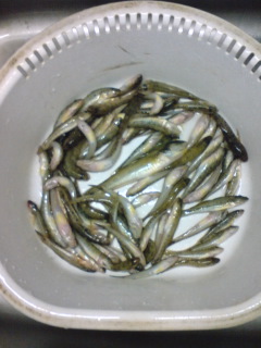 - そろそろハゼ釣りのシーズン。小学校の運動会の翌日、木曽川河口の立田橋上流に向かう。釣り具屋さんは大混雑。あせって、おもりを買い損ねてしまう。おまけに堤防工事でポイントに入る道が分からない。ようやく立田橋まで来て、河川敷に降りる道を見つけた。ガン玉1号のおもりでは心もとないが、それほど潮は速く無く、十分に役に立っている。子供らの2本の竿に次から次にダブルでヒット。絡んだ糸をほどいているうちに、次男の仕掛けには20cmのジャンボハゼが掛かり、大満足。2人が飽きてカニ取りをしている間にも食いはよく、昼までに軽く50匹をオーバーする。昼食後の潮が満ちてくる時間でさらに追加して60匹。さらに潮が満ちて護岸からの見釣りで、ハゼと手長エビを狙う。手長エビは掛からなかったが、次男の仕掛けに20cmほどのウナギが掛かった。