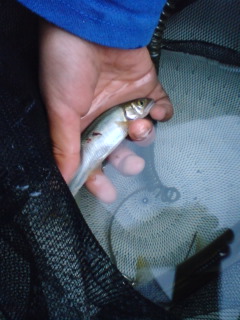 チビアユが今年の記念すべき第1号。白くて追い気はなさそう。その後、1時間お