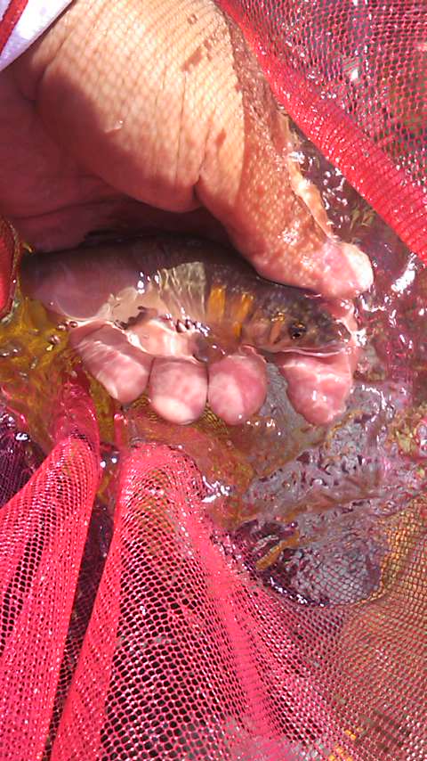 監視員さんがやってきました。昨日、豊田から5人来て、40匹くらい釣って行ったよ、とのこと。やはり反応が悪いはずです。鉄橋まで釣り下り、ここでも15匹ほど。もう一度、鉄橋下から橋2つを釣り下り、10匹追加。15時に終了で計40匹でした。