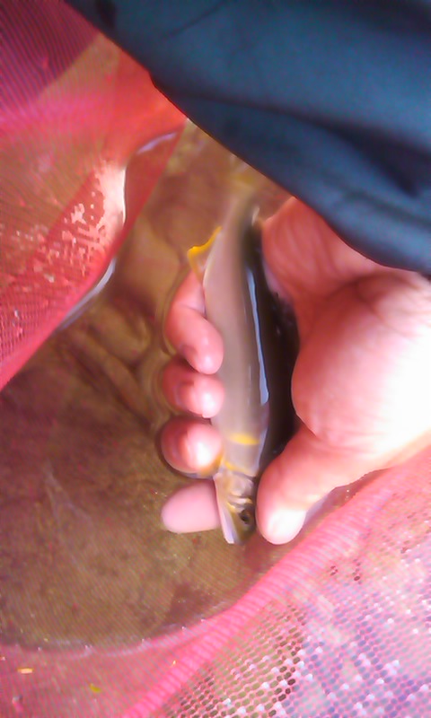 8時から9時、11時頃にピークがありました。15cm以上、12cmクラス、10cmクラスと、サイズがばらばらです。小さすぎても大きすぎてもおとりにはちょっとという感じです。昼を過ぎると、おとりをかえて針を変えるとぱたぱたと掛かり、段々サイズが小さくなって、それっきりという状態の繰り返し。それでも14時半まで粘って60匹でした。対岸の人は80は掛けていたと思います。竿が当たったり糸がからまることもありませんでしたので、上手な人だったと思います。