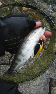 何カ所かのポイントで2〜3匹ずつかかり、14時に終了としました。朝は雪も舞いましたが、日中は太陽が暖かく、気持ちのよい釣行となりました。