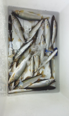 • 今年も朝倉さんが見に来てくれて、竿を渡すと、上手に泳がせて5連発。これを親になんとかリズムを取り戻し、自分も5連発。丁寧に泳がせることの重要性を再認識しました。それでも水中糸は0.125号を使っているのですが。。。