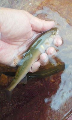 入川ポイントに戻ると、去年川で会ってオトリを提供した人に再会しました。今回もオトリを提供しました! まだまだ掛かるはずですが、天気があやしくなっています。車を運転してからまもなく雨が降ってきました。 |