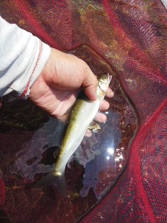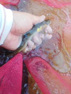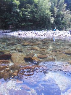 - 少し早いお盆休みです。朝倉さんと最近好調の付知に向かいます。下流からめぼしいポイントを見て行きますが、どこも川の状態は良くありません。1箇所だけ良かったポイントに入ります。初めてですが、淵と瀬が連続しているポイントです。淵尻には多くの群れ鮎が見えます。後期放流ものでそれほど大きな鮎ではなさそうと思っていましたが。。。時間1匹のペースですが、多くの鮎が見えているので退屈はしません。少し遠くのポイントに入ると、3m以上閃光が上流に向かいました。思わずのされそうになるところをこらえて、時間を掛けてすくったのは、23cmを超える大物です。群れ鮎が小さく見えたのは水が奇麗で水深が深いからのようです。