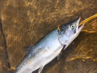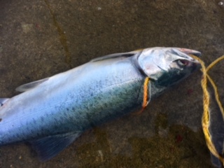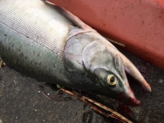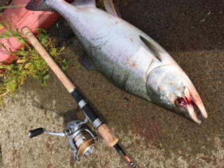 メジャークラフトの柔らかい竿のため走り回られましたが、50cmの雄のカラフトマスを初ゲット!!