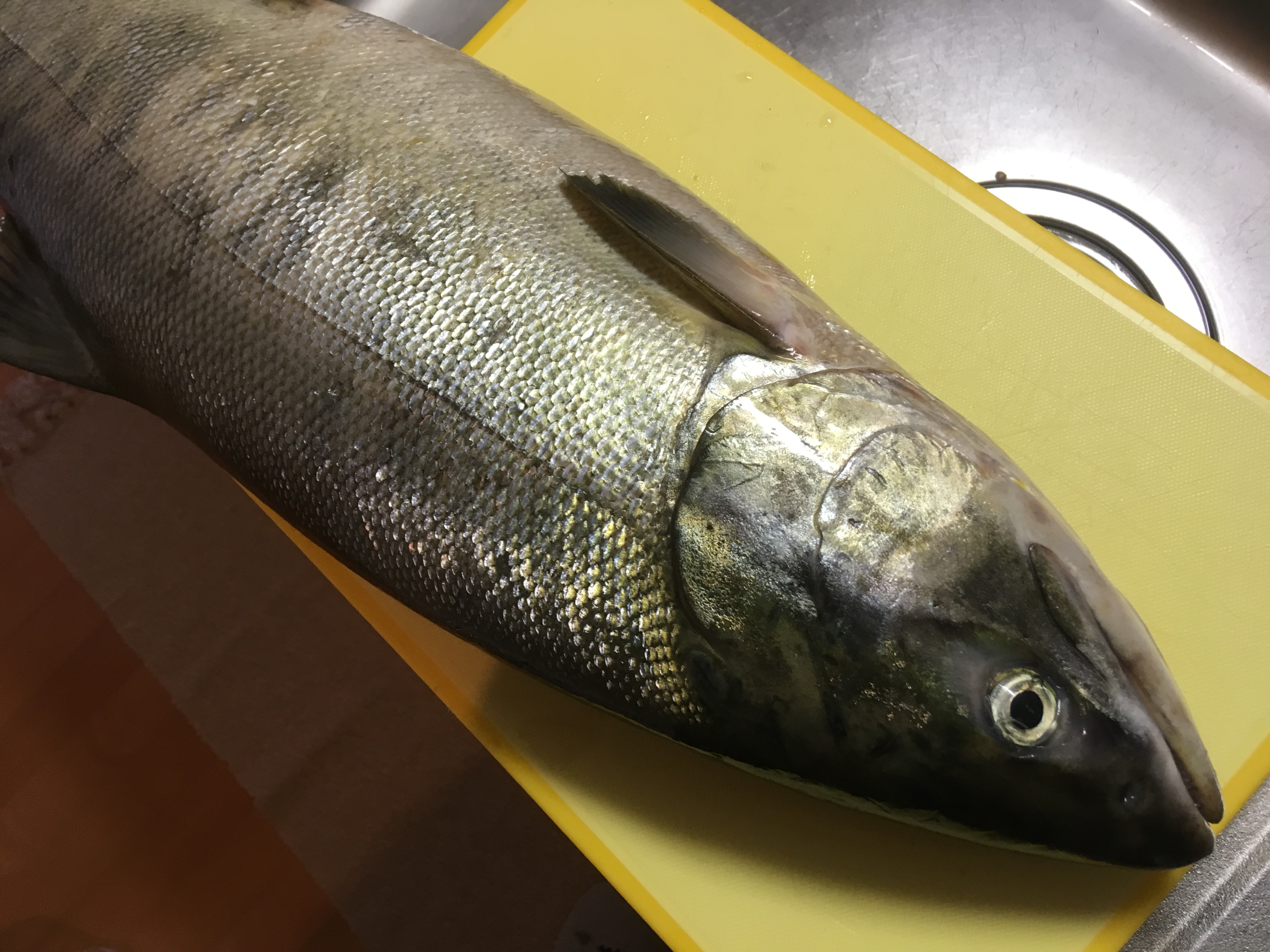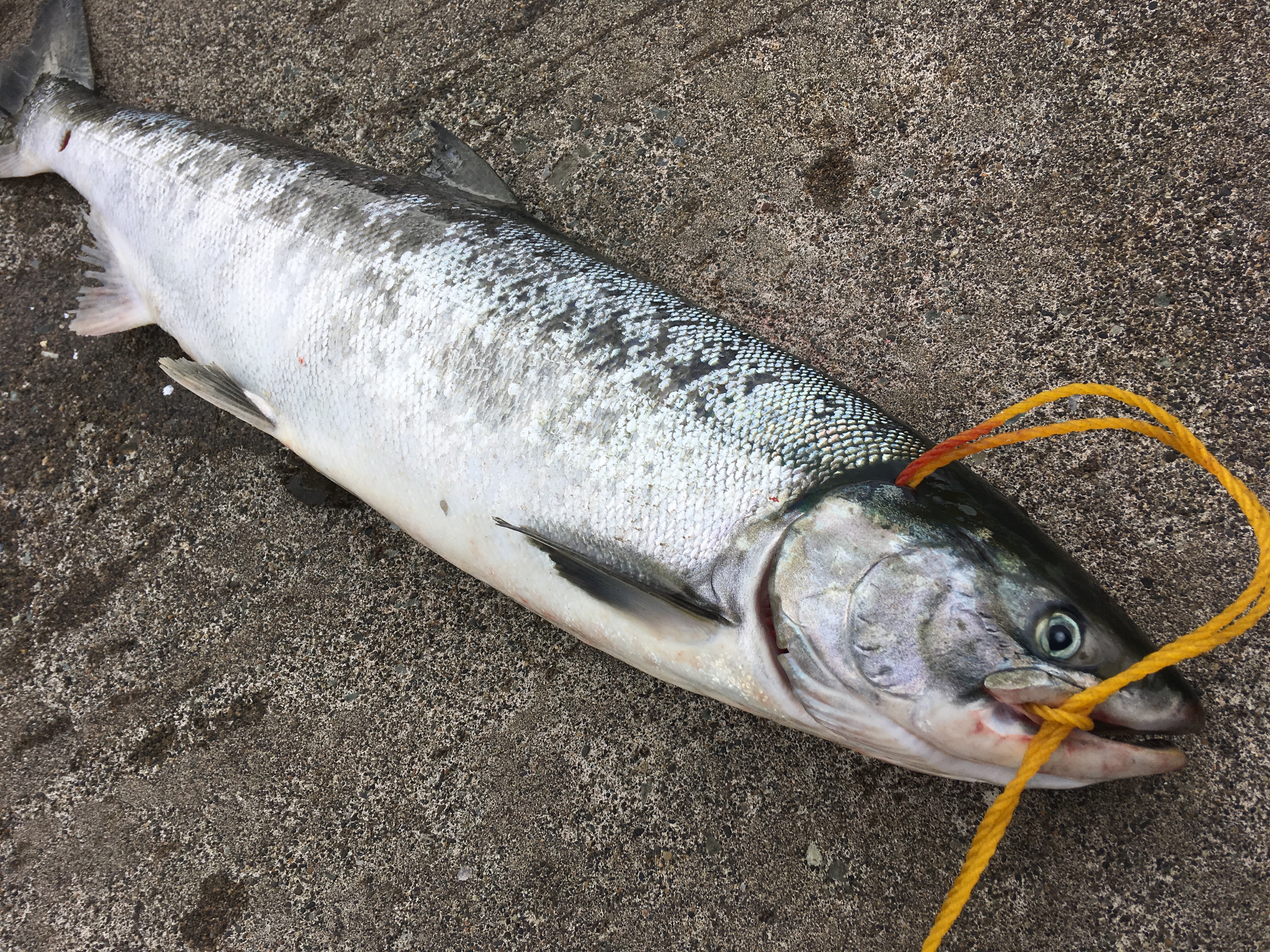 6時にも当たりがあり、1匹目よりひとまわり大きなサケが上がってきました。ところが、タモを出したところで急に走られて、PEラインを切られてしまいました。